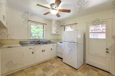 This upstairs unit has 2 bedrooms, 1 bathroom, kitchen and lanai . Includes refrigerator, range, ceiling fans, and new lights!