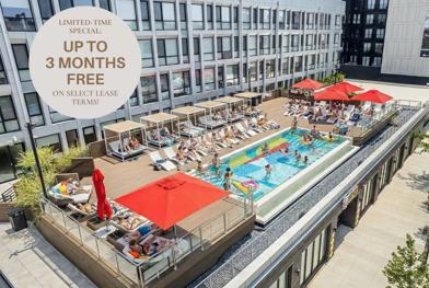 At The Americana, the pool is the centerpiece - complete with a one-of-a-kind hand-painted mural. Surrounding it are two lower-level decks: one with cabanas, fire pits, grills, and plenty of seating, and another with hammocks, cornhole, and beanbag chairs. Step indoors to the game lounge with a pool table, shuffleboard, TVs, and more. And as a resident, you'll also enjoy full access to the shared amenities at our sister property, The Luxe, just next door.