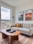 An inspiring apartment community with an upscale vibe and central location between downtown LA and Silver Lake, with easy access to Highway 101. While you admire the view of the Los Angeles skyline through your floor-to-ceiling windows, your guests will admire your apartment's fluid design and contemporary features. The kitchen draws the eye from the wood plank flooring up to the stainless-steel appliances, quartz counters, and upper cabinets in white lacquer and lower in brown wood tones. Socialize in the clubhouse and then have a refreshing drink on the rooftop Jacuzzi pool deck, grill your barbecue favorites, or simply relax in front of several fire pits taking in the skyline. Take advantage of the state-of-the-art fitness center or visit the onsite pet park or pet spa to take care of your pet.