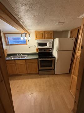 Cozy downstairs basement studio features warm wood paneling, soft wall sconce lighting, and a carpeted bedroom area for extra comfort. With 1 bathroom and a prime location near all downtown amenities, this unit offers both convenience and charm. Accepting both long-term and short-term leases Monthly Rent: $800 Monthly Utility Fee: $150 Electricity: Tenant sets up with GVEA Additional Info: Smoke-free property Cats and Small dogs allowed on approval. Please fill out a free application to get a showing time!
