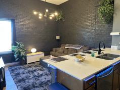 Modern 2 Bed / 1 Bath apartment with luxury vinyl plank flooring, stainless steel appliances, and in-unit washer & dryer. Enjoy exposed brick accents, off-street parking, and a gorgeous fountain view from your second-floor unit. Upscale, modern living with small-town charm — everything you want in one place.