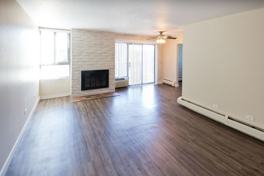 This 2 Bedroom features a Balcony, Stainless Appliances, Granite Counters, Modern Color, Premium Flooring, Abundant Closet Space, Ceiling Fan, A/C, a Fireplace, and a Spacious Floor Plan.