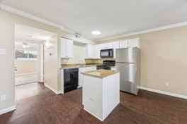 Large 1-1 in small gated community. Laminate floors in living and new carpet in bedroom, large island kitchen with stainless steel refrigerator and granite. Central air/heat and washer/dryer in unit.