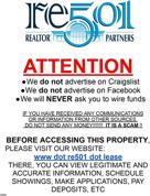 – BEWARE OF SCAMS | We do NOT advertise on or Facebook Marketplace. Learn more about SCAMS here: www re501 lease beware-of-scams