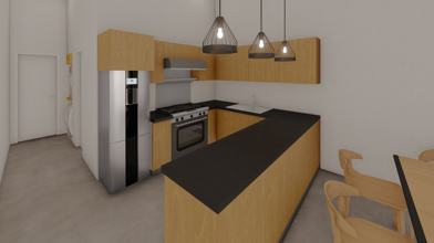 One Bedroom One Bathroom, beautiful kitchen, Workspace facing on Santa Monica Blvd. Will be available in August. See rendering pics and measurements in pictures attached to post.
