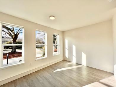 This corner two-story 2BD/1.5Bath townhome has a well-thought-out and inviting floor plan. The white walls and modern cabinetry make for clean lines and an easy canvas to paint your own picture. The kitchen has stainless steel appliances, beautiful quartz countertops, a dishwasher, and a built-in microwave. The unit has double-pane windows and LED lighting throughout. The living room and dining room have an open concept which makes for a welcoming space for entertaining. The unit also features A/C and a private outdoor patio.