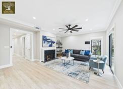 This ground-level unit within a newly renovated duplex has been completely redesigned from the ground up, featuring premium finishes, modern systems, and a thoughtfully open floor plan. Offering 2 bedrooms and 2 bathrooms, with approx. 1,600SF, the home welcomes you with a warm living room and custom fireplace that seamlessly connects to an oversized dining area and a stunning chef-inspired kitchen. Designed for both entertaining and everyday living, the kitchen is equipped with high-end appliances, under-counter wine fridge, abundant cabinetry, and generous counter space.