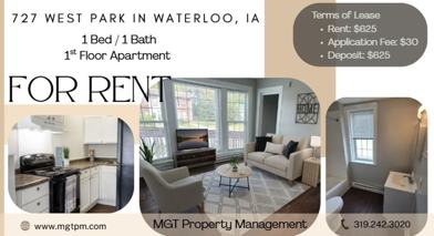 Welcome to 727 West Park in Waterloo, IA! This charming apartment offers 1 bedroom and 1 bathroom, perfect for those seeking a cozy living space. Enjoy the convenience of off-street parking, providing easy access to your home. Located in a prime location, residents can take advantage of nearby amenities and attractions. Don't miss out on the opportunity to make 727 West Park your new home sweet home. Tenants supply own window AC. Tenant pays all utilities. No smoking permitted inside property.
