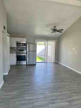 Take A Look At This Freshly Renovated Condo! Fantastic Floor Plan W/ Soaring Vaulted Ceilings, nice Large kitchen w/ White Shaker Cabinets, Pantry, Stainless Appliances, Under Mount Stainless kitchen sink & Featuring Quartz counter tops W/ oversized Island perfect for all your cooking needs. Stylish Grey Subway Tile Backsplash adds to the modern feel! Beautiful Tile Flooring, Spacious & Ready For You To Enjoy! Nice sized bedrooms w/ Fans & blinds. Stackable Washer & Dryer For Your Convenience. Grand Private Yard w/ turf Great for Bbqing up your favorites or just sit & relax. Fantastic Shaded Awning W/ picnic tables out front to add to your outdoor enjoyment! Ready For Immediate Occupancy. Move In Incentives On This Charming Home. Come Take A Look!
