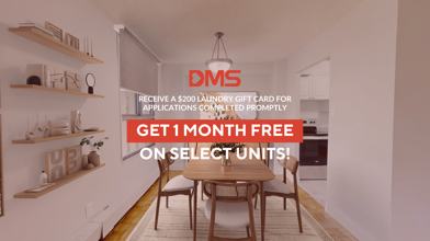 Rent Special available! Get 1 Month Free on Select Units Receive a $200 laundry gift card for applications completed promptly.