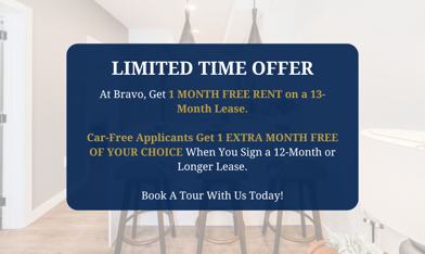 Car-Free Applicants Get 1 EXTRA MONTH FREE Of Your Choice When You Sign a 12-Month or Longer Lease!