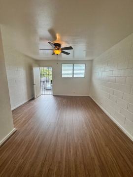 We have a newly renovated two-bedroom, 1 bath located on the second floor of a two story walk-up. It has new vinyl flooring, new kitchen cabinets & counters and has been freshly painted. It comes with one uncovered assigned parking stall. This unit is located close to Downtown and the H1 on ramp. The complex is located on a quiet side street.