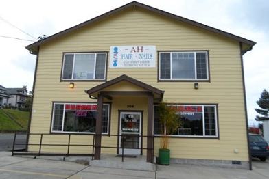 Large 2 bedroom 1 bathroom apartment with vaulted ceilings. 1100 square feet. Kitchen has custom cabinets and includes range, refrigerator, and dishwasher. All hardwood and Laminate floors. W/D Hookups. Heat is electric. Nice Deck. Upstairs Apartment. 1 year lease preferred. No pets. Tenant is responsible for all utilities. *Located above AH Hair and Nails, on the corner of Hall St. and S. 4th St in Coos Bay.* *1700 security deposit, based upon owner request.*