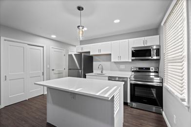 Each apartment is designed with an open-concept floor plan and contemporary finishes, including stainless steel appliances, granite countertops, shaker-style kitchen cabinets, engineered hardwood flooring, and recessed lighting. Enjoy the convenience of an in-unit washer and dryer and in-wall A/C units. Ample outdoor lighting and a security system have been added to enhance safety.