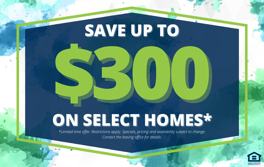 Rent Special available! Save up to $300 on select homes! *Limited time offer. Restrictions apply. Specials, pricing and availability subject to change. Contact the leasing office for details.