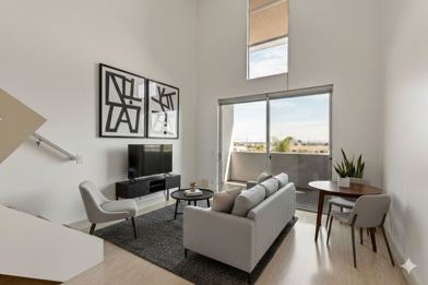 Be one of the first to live in this extraordinary building. Stunning two-story loft with 20 foot ceilings, large balcony, and tons of light. Flow-through unit with exposure on two sides. A/C and heating, washer and dryer in the unit, dishwasher, all new appliances, and assigned parking in the attached garage. All of these amenities, plus it's located in one of SD's most exciting neighborhoods. One block from dozens of restaurants, breweries, bars and shopping. Two blocks from the weekly Farmer's Market. Five minutes to downtown.
