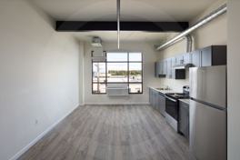 Air-condition, washer & dryers, and high ceilings with exposed steel beams all with a black and white color scheme in EVERY unit.