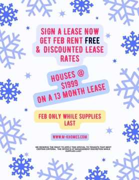 Free Month Rent with 13 Month Lease signed in February