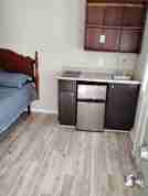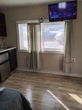 - This unit comes with 1 queen bed, a mini fridge and stove top. Electricity, heat, water and Wi-Fi are all included in the monthly rate.