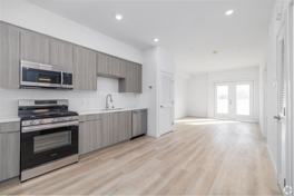 • Modern kitchen with gas stove, dishwasher, and microwave