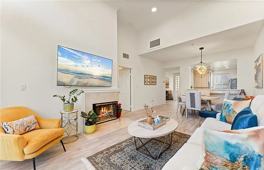 Inside, soaring 13-foot ceiling and natural light create an airy, uplifting feel. The open living space features a cozy fireplace and dining area, while the versatile den with custom built-ins offers space for a home office, hobby room, or overnight guests.
