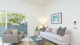 Discover urban charm in this stylish 1BR/1BA condo, nestled in the vibrant neighborhood just North of Wilshire. With soaring loft-like ceilings, this cozy retreat emanates charisma, offering a unique living experience. Situated on the top floor of a carefully maintained courtyard building, relish in the allure of a rare, glistening outdoor pool. Take in the picturesque views of the tree-lined street from the bedroom, while the balcony and pool area provide a serene backdrop from the main living space. Indulge in the convenience of being mere minutes away from the eclectic mix of shops, eateries, and lifestyle offerings along trendy Montana Ave. Step inside to find a bright and updated interior, thoughtfully adorned with modern finishes. Delight in the remodeled marble bath, the luxury of new vinyl flooring throughout, and the sophistication of brand-new stainless-steel appliances paired with granite countertops in the kitchen. Fresh paint accentuates the space, while ample closet storage adds practicality to the home. Convenience is at your doorstep with Whole Foods and Trader Joe's just a few blocks away. Additionally, revel in the ease of one-car parking and extra storage. Embrace the tranquility of this secure, private retreat in an unbeatable location a perfect sanctuary to call home