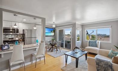 Located in the desirable Vista Del Oro neighborhood in San Pedro, this adorable unit is well upgraded with quality and style and has a sweeping views of Long Beach Harbor and the ocean! Located well in a corner of the upper level, this unit is open and filled with natural lights and offers a quiet and private lifestyle. Through the large sliding door in the dining area, there is a cozy deck overlooking sweeping Long Beach Harbor and ocean views at day and sparkling lights at night! The intensive upgrades include: The kitchen with granite countertops, bars and stainless-steel appliances and recess lightings, a bathroom with granite countertop and a beautiful under mount sink, maple wood flooring, smooth ceiling and lightings with fan and so on. A washer and dryer closet by the bathroom and additional cabinets providing ample storage. This unit comes with an assigned parking spot in a secured parking garage with an automatic gate. Vista Del Oro neighborhood is just a blocks away from San Pedro Fish Market and the ocean side, easy access to 110 Freeway and Long Beach and Palos Verdes. Come and see this "Must See" unit that hardly comes by