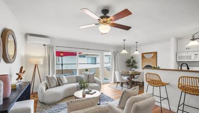 Experience modern comfort and convenience in this chic one-bedroom condo, nestled in the prestigious Brentwood neighborhood. Step inside to discover a seamlessly designed space with fresh flooring and a crisp coat of paint throughout. The bedroom offers a cozy retreat, perfect for unwinding after a busy day. Relish in outdoor living on the recently refinished balcony, complete with mini-split AC units installed in 2022 for year-round comfort. With one covered parking space and overhead storage, convenience is at your fingertips. And rest assured, the building's roof was replaced in 2019, ensuring peace of mind for the future. Located moments away from Brentwood's finest attractions, shops, and trendy dining, including the Brentwood Country Mart, this updated condo offers the epitome of modern living in Brentwood.
