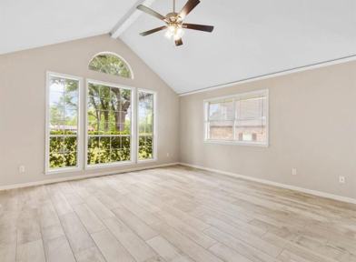 This beautiful 3 bedroom, 2 bathroom home is ready for new tenants. It has an open concept layout that is perfect for entertaining. It comes with all of kitchen appliances as well as the washer and dryer. Outside you will find a nice covered patio, huge fenced back yard and mature trees. Pictures are from previous listing.