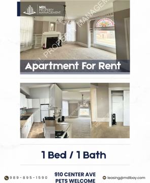 Beautiful historic apartment featuring original architectural details and plenty of natural light, located just minutes from Downtown and Uptown Bay City. Apartment Features • Original stained glass windows • Beautiful original woodwork throughout • Built-in storage for added convenience • Large windows allowing tons of natural sunlight • Second-floor views of Center Avenue Community Amenities • On-site coin laundry • Outdoor patio area for tenants • Convenient location close to Downtown & Uptown Bay City Utilities • Tenant pays Bay City Electric • All other utilities included Additional Information • Pet-friendly – ask about our pet policy • RHINO available as an alternative to a traditional security deposit • Renters insurance required (or available for a low monthly cost)