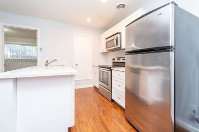 We are pleased to offer this beautiful, remodeled unit in South Berkeley. This 1 bedroom, 1 bathroom unit is approximately 600 sqft and includes many high-end finishes. The kitchen is upgraded with stainless steel appliances including dishwasher, Quartz countertops, vintage style white subway tile in the shower, new wood laminate flooring and new dual pane windows. The open concept living space is perfect for entertaining and the bedroom can easily fit a queen-size bed including plenty of closet space. The unit is located on a very well maintained 6 unit building, which has a communal back patio surrounded by trees.