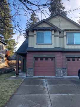 Charming 2-bedroom, 1.5-bathroom duplex located in Bend, OR. This cozy unit features a fireplace, attached garage, and a convenient side patio perfect for enjoying the fresh air. Powder room located downstairs, bedrooms located upstairs. Each bedroom has their own powder room, with a joined jack and jill style bath/shower- perfect for roommates! Both bedrooms have tall ceilings with ceiling fans as well. Situated close to the historic Old Mill district, residents can easily access shopping, dining, and entertainment options. Don't miss out on the opportunity to call this lovely unit home.