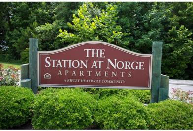 The Station at Norge 7721 Croaker Rd is a rental apartment building with 2 floorplans available. It is located in Williamsburg. It has apartment amenities including carpet, dishwasher, balcony, in-unit laundry, on-site laundry, walk-in closets, and air conditioning. It has building amenities including on-site laundry, residents lounge, swimming pool, and outdoor space.