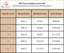 Affordable Qualifications - 1 Household Member: $88,000 (80%); 2 Household Members: $100,560 (80%); 3 Household Members: $113,120 (80%); 4 Household Members: $125,680 (80%); 5 Household Members: $135,760 (80%). Quintessa Apartments proudly boasts our lovely studio and variety of one-bedroom apartments for rent! Each abode has excellent features, such as attractive double-pane windows, refreshing air conditioning, and a smoke-free environment you deserve! Our floor plans page will give you a glimpse of what each apartment looks like based on the floor plan and a rundown of the superb amenities you gain! Also, we are a pet-friendly community, so your four-legged companions are welcome.