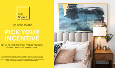 All rents advertised or quoted reflect the average monthly rent over the full 18-month lease term, inclusive of the total incentive value. The structure and timing of how the incentive is applied may differ from how rental prices are displayed, as the total incentive amount is allocated in increments in accordance with your lease. The full value of the incentive will be honoured over the lease term. Available for a limited time only. Terms and conditions apply. For full details, speak with a member of our leasing team.