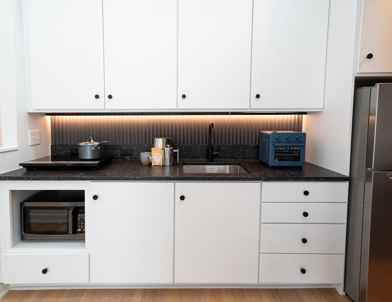 All utilities are included, along with high-speed WiFi and a smart TV. A premium mattress makes for restful sleep, the kitchenette is stocked with essentials, and the in-unit washer and dryer add convenience.
