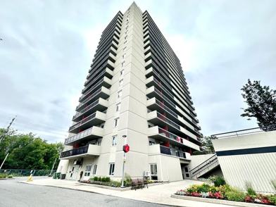 Ottawa., Vanier. Location, Location, Location! Bright, Spacious 2 bedroom, 1 bathroom Condo at Chateau Vanier! Available for rent May 1st and long term! With 975 sq ft, this is the largest 2 bed condo in the complex! Beautiful hardwood flooring throughout. Open concept living room with wall to wall patio door leads to a large balcony with breathtaking views of the landscaped grounds surrounded by trees and walking paths. Kitchen with ample cupboards and countertops, fridge and stove open to the dining and living rooms. Bedrooms are large with wall to wall closets and large window. Convenient in unit, large storage room w/shelving. Building amenities include a laundry room, indoor swimming pool, fitness centre, sauna, bike storage, and car wash station. Smoke free building! Amenities at the main floor of the building include a nail spa, barbershop, convenience store and more. Walking distance to grocery stores, restaurants, Loblaws, Centre Pauline-Charron and Rideau River Parkway! Short drive to downtown Ottawa, HWY 417, Trainyards, St Laurent mall, Gatineau. ***The parking garage is currently being revamped, and parking will be unavailable during the construction period, anticipated to be completed by January 2026. Once an underground parking spot is made available, it will be $100/month. There may also be exterior parking available, within walking distance, during the revamp; pls inquire within.*** NO DOGS AND NO SMOKING (PER CONDO RULES)!