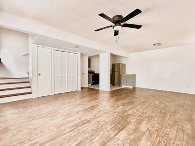 Garden Style 4-Plex with shared laundry free of charge! Each unit has a connected private, fenced yard. Both bedrooms and full bath are located upstairs.