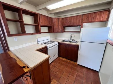 1 Bedroom/ 1 bathroom charming unit- Features include: Single story unit, tile floors, wood beamed ceilings, refrigerator and electric range.