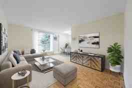 These two well-maintained, low-rise buildings offer a variety of spacious two-bedroom apartment layouts, perfect for those seeking comfort and convenience. Our bright, updated suites feature beautifully refinished hardwood parquet floors, ceramic-tiled kitchens and bathrooms, and modern appliances.