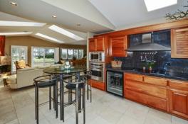 Wake up to sweeping ocean views and the sound of the surf in this beautifully appointed Moran Lake beach home overlooking 26th Avenue Beach. Luxury coastal living awaits with a gourmet kitchen featuring cherry wood cabinetry, granite countertops, stainless steel appliances, a gas cooktop, Vinotemp wine cooler, and Sub-Zero refrigerator. The spacious primary suite offers a private retreat with dual vanities, a tiled shower with dual shower heads, and a large walk-in closet with cedar flooring. Sliding doors from both the primary suite and living room open to ocean-view balconies, creating seamless indoor-outdoor living. Elegant finishes include travertine and slate flooring throughout, a wood-burning fireplace, built-in entertainment center, and plantation shutters. Ideally located along a scenic greenbelt just a short 100-yard walk to 26th Avenue Beach. The large cul-de-sac lot features mature landscaping, tasteful hardscape, a tranquil waterfall and pond, multiple patios for outdoor entertaining, and ample on-site parking. Gardener service included.