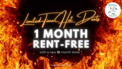 Rent Special available! First Month Rent Free with a 12-month Lease Receive your FIRST MONTH RENT FREE! This limited time offer is available for new applications on select suites with a 12 month lease term. Contact our leasing agent for further details!