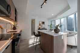 The striking two-tower development offers high-end, purpose-built rentals that raise the quality of living in this central location. Curvy and organic, the 23- and 29-storey towers sit on a two-storey podium that emphasizes generous ground-floor retail and a connection to the street on all sides. The sculpted design is in keeping with the sophisticated approach taken both inside and out to bring refined living to west downtown.