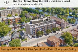 AVAILABLE IN SEPTEMBER + ONE MONTH FREE: The Mia is a modern six-storey rental residence near the Ottawa’s Glebe, offering 67 thoughtfully designed apartments, including studio, one-bedroom, and two-bedroom layouts. Designed for those who appreciate both elegance and convenience,