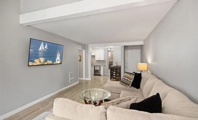 This modernized 1-bedroom, 1-bathroom condo in the coveted MacArthur Village, a secure guard-gated community. Perfect for first-time homebuyers, this upper unit encompasses 700 square feet of thoughtfully designed living space. Nestled in one of Santa Ana's prime locations, South Coast Metro, this residence is mere blocks away from the renowned South Coast Plaza mall, the cultural hub of Segerstrom Center for the Arts, and the vibrant Metro Point. A spacious living room awaits, ideal for entertaining, and seamlessly extends to a private balcony, offering a tranquil retreat. The upgraded kitchen boasts recessed lighting, stainless steel appliances, and beautiful granite countertops, and white shaker cabinets. Down the hallway, you will find the generously sized bedroom with a large walk-in closet. Adjacent to the bedroom is the large full bathroom with a granite countertop vanity and shower-in-tub with a glass sliding door enclosure and tiled backsplash. amenities that include a sparkling pool, spa, tennis and basketball courts, gym and a clubhouse, providing a perfect balance of relaxation, recreation and exercise. Parking is a breeze in this community, with ample spaces available and the added convenience of an assigned carport and one uncovered space, eliminating any parking concerns.