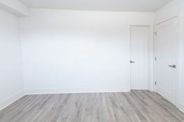 Small balcony for entertaining, grey vinyl floors throughout