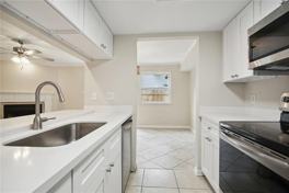 This beautiful home is move-in ready. The kitchen features custom cabinets, quartz countertops, and stainless steel appliances—great for cooking and entertaining. Both bathrooms have been remodeled with new vanities, lighting, fixtures, and flooring. Outside, enjoy fresh landscaping with a sprinkler system, plus a new roof and updated garage door. With modern finishes throughout, this home is ready for you. Come see it for yourself—give us a call to set up a viewing!