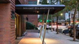 300 East 39th 300 E 39th St, New York, NY is a rental apartment building with 14 floorplans available. It is located in the Murray Hill neighborhood of New York. It has apartment amenities including dishwasher, in-unit laundry, microwave, and air conditioning. It has building amenities including outdoor space, roof deck, fitness center, residents lounge, package service, business center, elevator, on-site management, and concierge service. Cats and dogs are allowed, making it a pet-friendly building.
