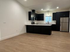• Modern kitchen with soft close custom cabinetry, Energy Star stainless steel appliances include: dishwasher, refrigerator, oven range, hood-vent microwave