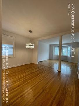 Welcome to 1-765 Queensdale Ave E! A beautifully bright and spacious main floor home is available for rent in the desirable East Mountain. Enter through to an open concept, roomy living area situated next to the large bay window bright enough to light up your entire home with front facing views of the quaint neighbourhood.